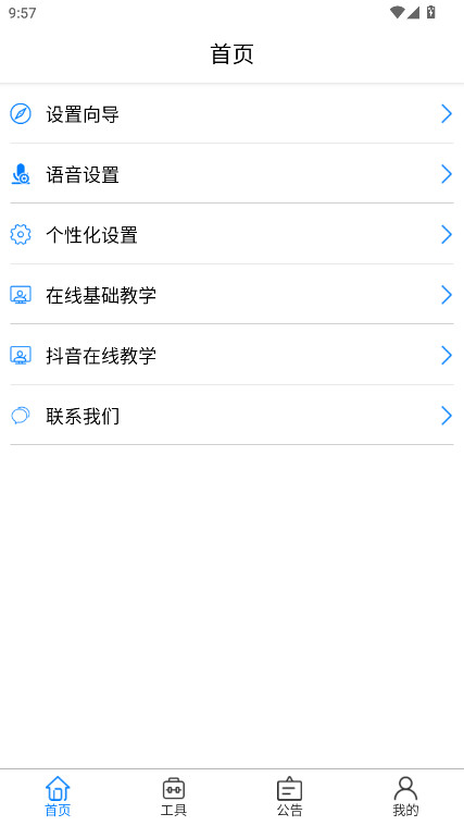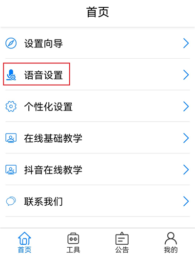 1、点击【首页】的第二个【语音设置】的功能。