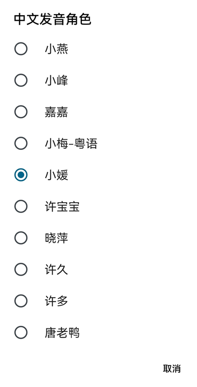 7. 具备明确的更换中文发音角色方法,通过点击首页第二个语音设置功能等一系列操作,就能随意选择中文发音角色。