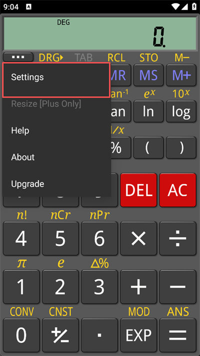 1、在计算器主界面,点击左上角 "···" 菜单按钮;