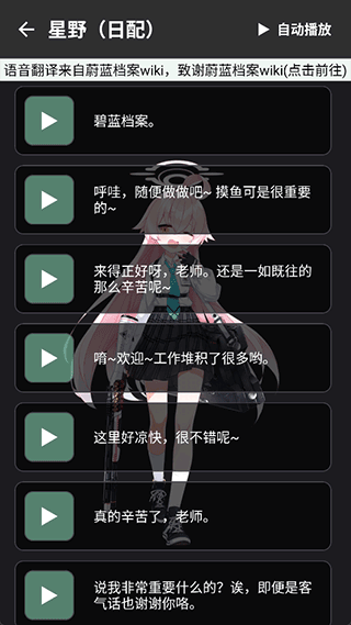 1. 收录了蔚蓝档案众多角色语音内容,涵盖战斗台词、日常对话及特殊事件语音等多种类别