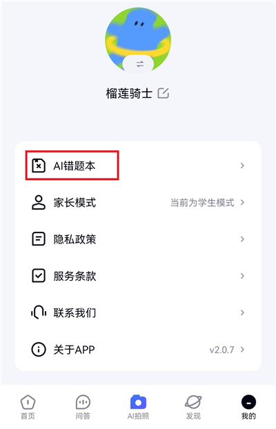 1、登录之后来到【我的】页面,点击【AI错题本】。