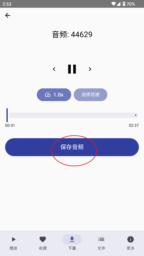4、解析完成,点击保存音频,就可以直接保存该音频到本地了