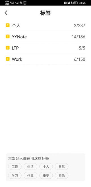 2、触摸/点击任意空白处,就可以添加标签。也可以直接使用我们推荐的标签,触摸/点击推荐标签,就会被添加作为分类标签,可以标签来分类待办、随笔、日程上。