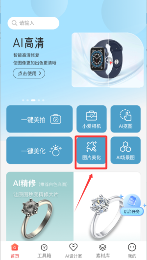 2、选择图片美化功能进入页面。