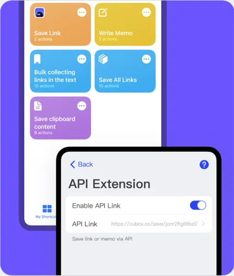 为收藏、标注、收藏夹等内容创建深度链接,随时在其它应用中引用 Cubox 内容。