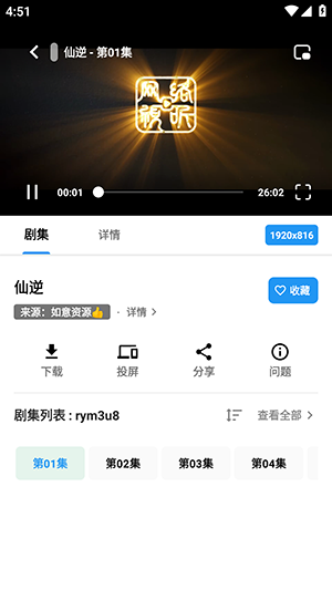 2、接着任意播放一部电视剧,找到播放界面的【下载】按钮