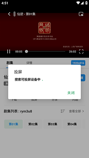 3、点击投屏选项,等待软件搜索投屏设备即可投屏。