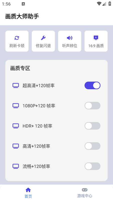 1、在本站内下载安装并打打开软件进入“首页”,在“画质专区”选择目标画质与帧率组合。