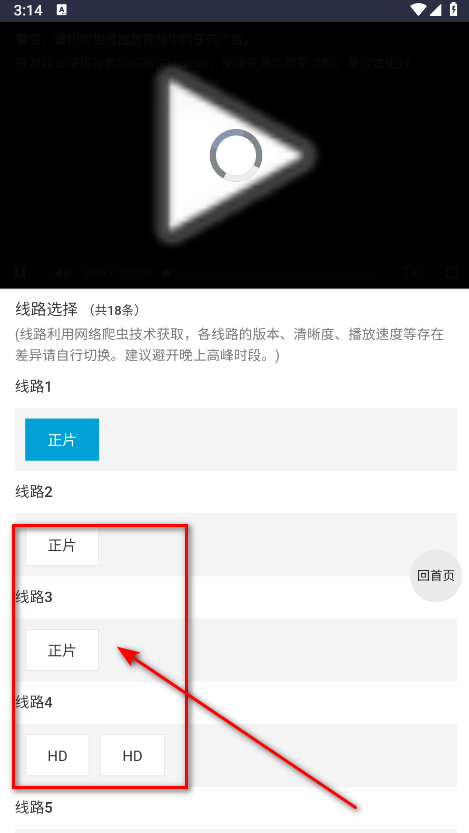 3.如果默认线路播放效果不行,就请切换其他线路播放就好了