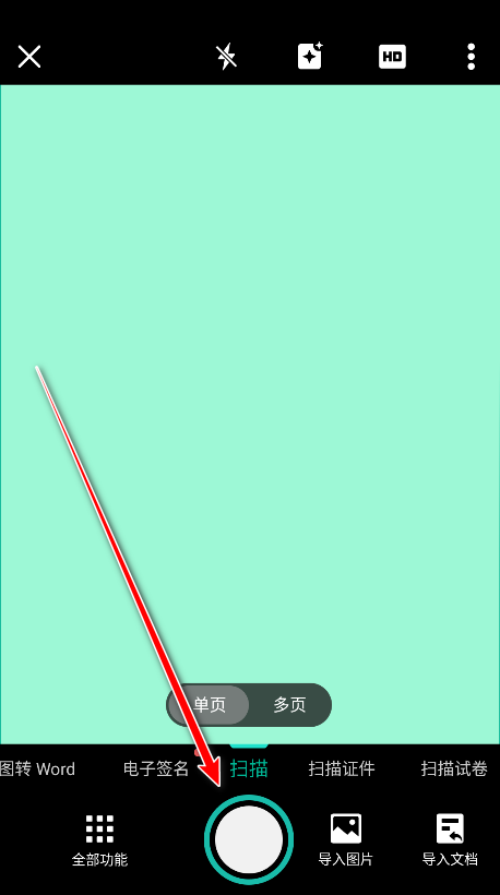 3.对准要扫描的纸张,让纸张的边缘和内容在相机内清晰可见,点击拍照按钮。