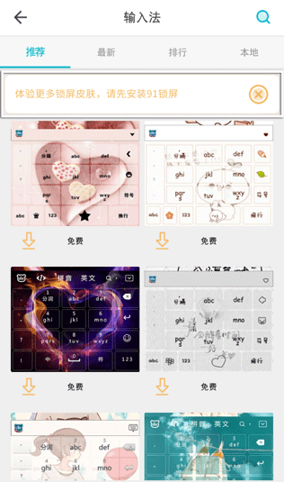 (1)在91桌面>个性化>混搭>锁屏模块下载安装91锁屏,或在各大应用市场搜索“91锁屏”进行下载安装;