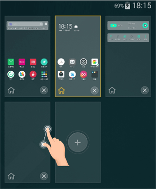 1、在桌面上通过双指捏合的动作,进入屏幕预览页面,点击屏幕最后侧的+号,即可添加屏幕。