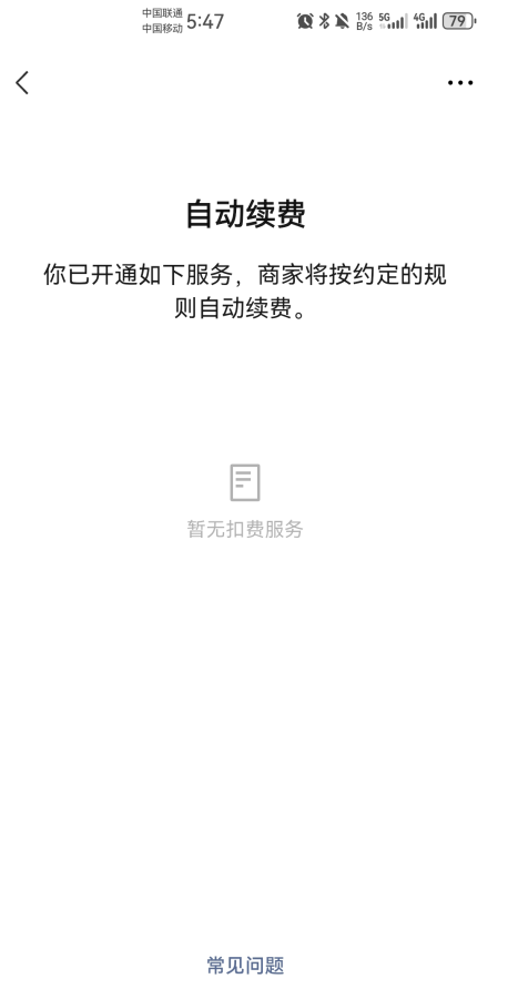 6.在自动续费的界面找到咪咕视频,点击进入关闭自动续费服务即可。( 小编穷所以没有充咪咕视频会员,在如下的图片中,大家如果之前充会员了就会有显示哈)