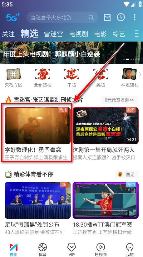 1.确保你的手机和电视连接在同一个WiFi网络下,打开咪咕视频,点击我们想看的电视剧。