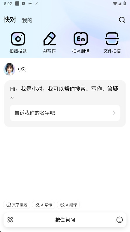 ¿ì¶ÔaiÊÇÒ»¿îרΪѧÉúºÍ¼Ò³¤Éè¼ÆµÄ¸ßЧѧϰ¸¨Öú¹¤¾ß¡£ËüµÄºËÐŦÄÜÊÇ¿ìËÙËÑË÷ºÍÌṩ½Ì²ÄÓëÁ·Ï°²áµÄ´ð°¸¼°½âÎö£¬¸²¸ÇÖÐСѧÖ÷Á÷¿ÆÄ¿¡£AppÀûÓÃAI¼¼Êõ£¬Ö§³ÖÅÄÕÕËÑÌâ.ÓïÒôËÑÌ⣬²¢ÌṩÏêϸµÄ½âÌâ˼·ºÍ֪ʶµã½²½â¡£ËüÖÂÁ¦ÓÚ°ïÖúѧÉú¿ìËÙ¼ì²é×÷Òµ.Àí½âÄÑÌ⣬²¢Í¨¹ý¾«×¼µÄ½âÎöʵÏֲ驲¹È±£¬ÊÇÌáÉýѧϰЧÂʺÍ×ÔÖ÷ѧϰÄÜÁ¦µÄºÃ°ïÊÖ¡£