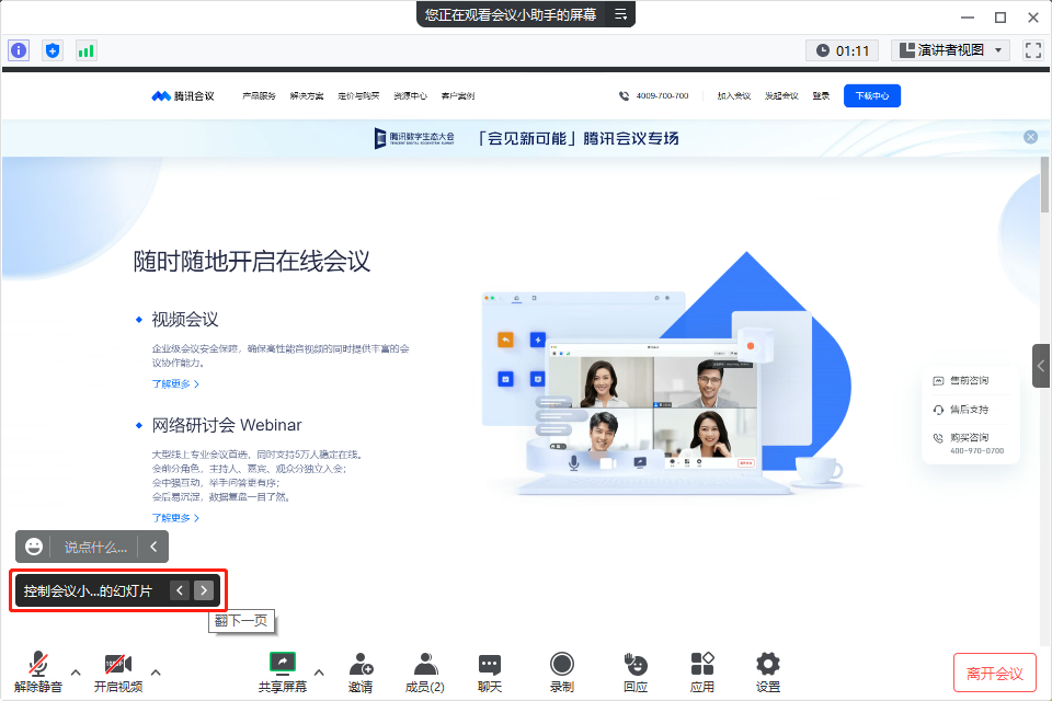待前一位共享者结束后,所有参会人将观看您的屏幕。