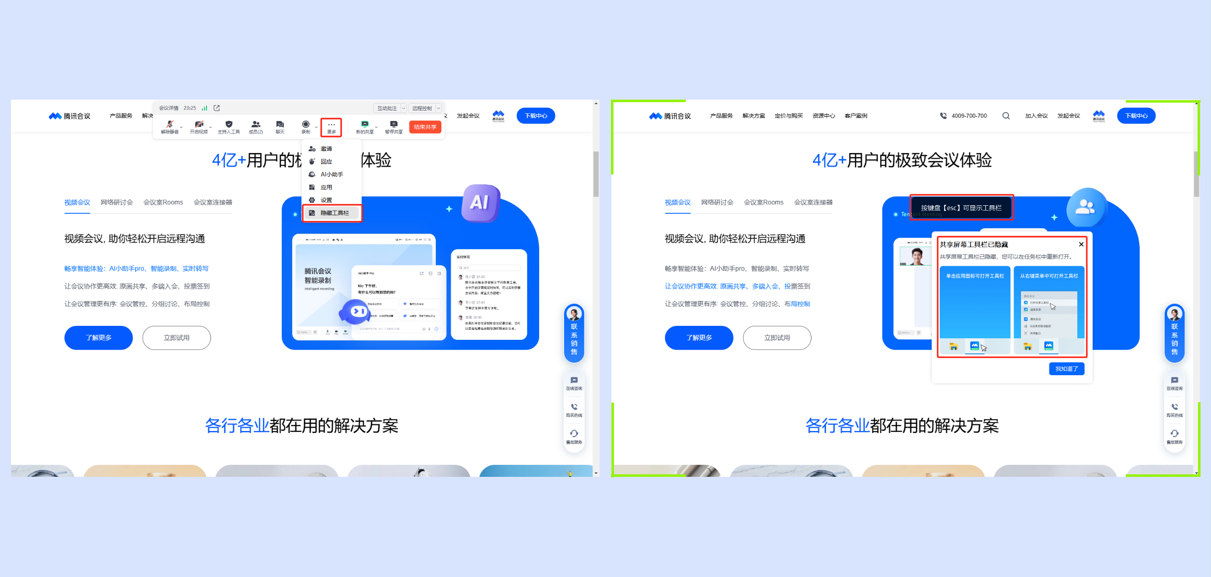 3.31及以上版本支持共享屏幕时隐藏工具栏