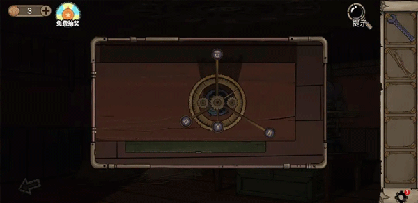 8、接着去004房间桌面上拿到火钳。查看左下角翻起的地毯下面,在装置里放入二极管。然后开始解开,这里的数字全靠猜而且每一次都是不一样的,然后只能根据指示灯上的来调整,所以只能靠你们自己了~,但是尝试的话可以以1234 5678 这样开始尝试。完成后拿到扳手。用扳手将地球仪上的齿轮取下来。