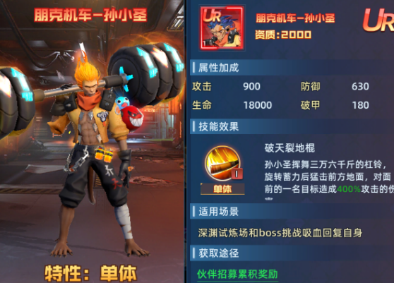虽然和苏妲己都是偏向于单体攻击能力强的伙伴,但孙小圣的血量和抗性会更强一些,主动技能携带的控制技能能够很好的帮助孙小圣脱离困境,是一个不错的前排伙伴,比较适合刷深渊试炼场这种闯关玩法。