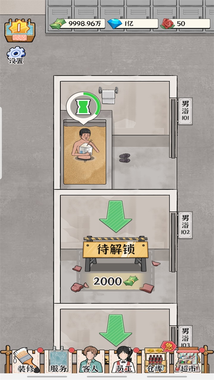浴场之王是一款轻松有趣的模拟经营手游。玩家将扮演一位浴场老板,从零开始打造属於自己的梦幻温泉浴场。游戏中,你需要装修升级设施、招募特色员工、研发创新服务,吸引更多客人光临。从澡堂清洁到餐饮供应,每个细节都由你掌控,目标是将你的浴场打造成最受欢迎的温泉圣地,体验成为“浴场之王”的经营乐趣。