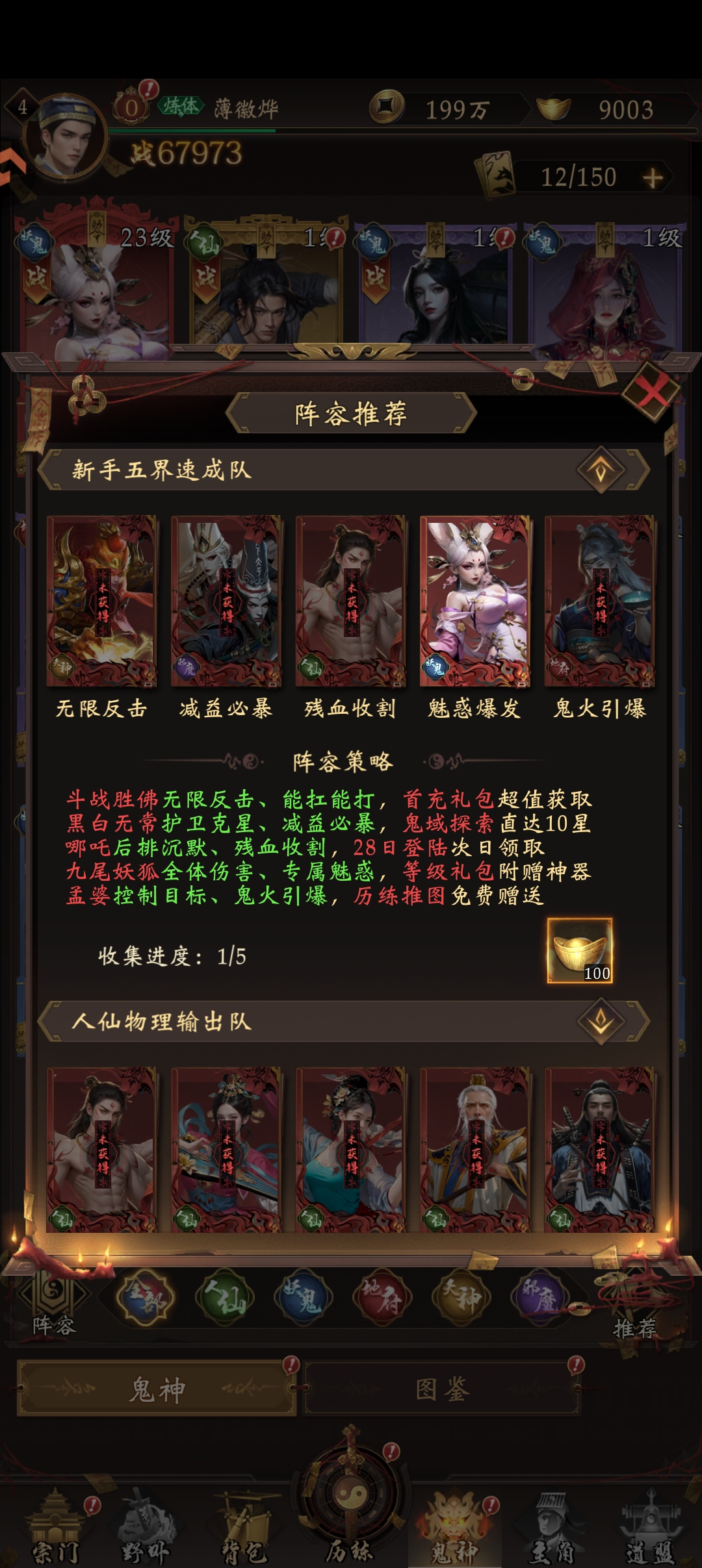 阵容组成:牛头+陆之道+钟馗+孟婆+崔珏