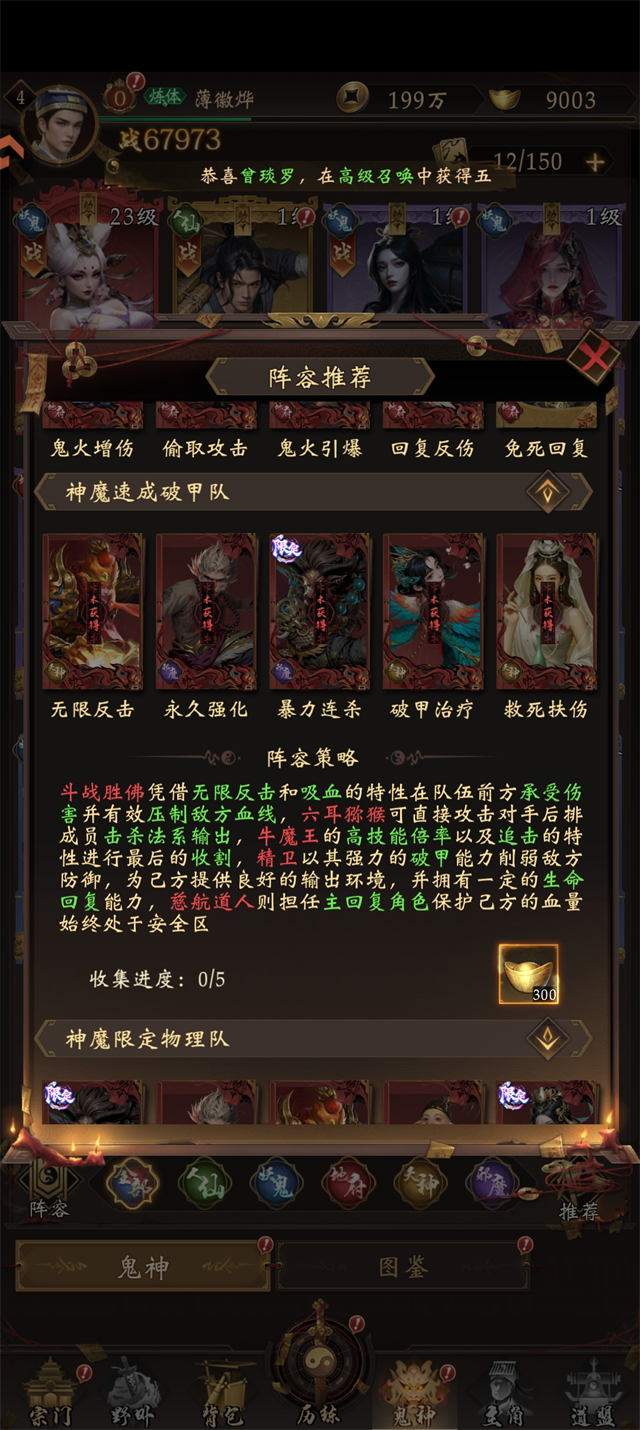 阵容组成:牛魔王+六耳猕猴+斗战胜佛+猪八戒+洛神