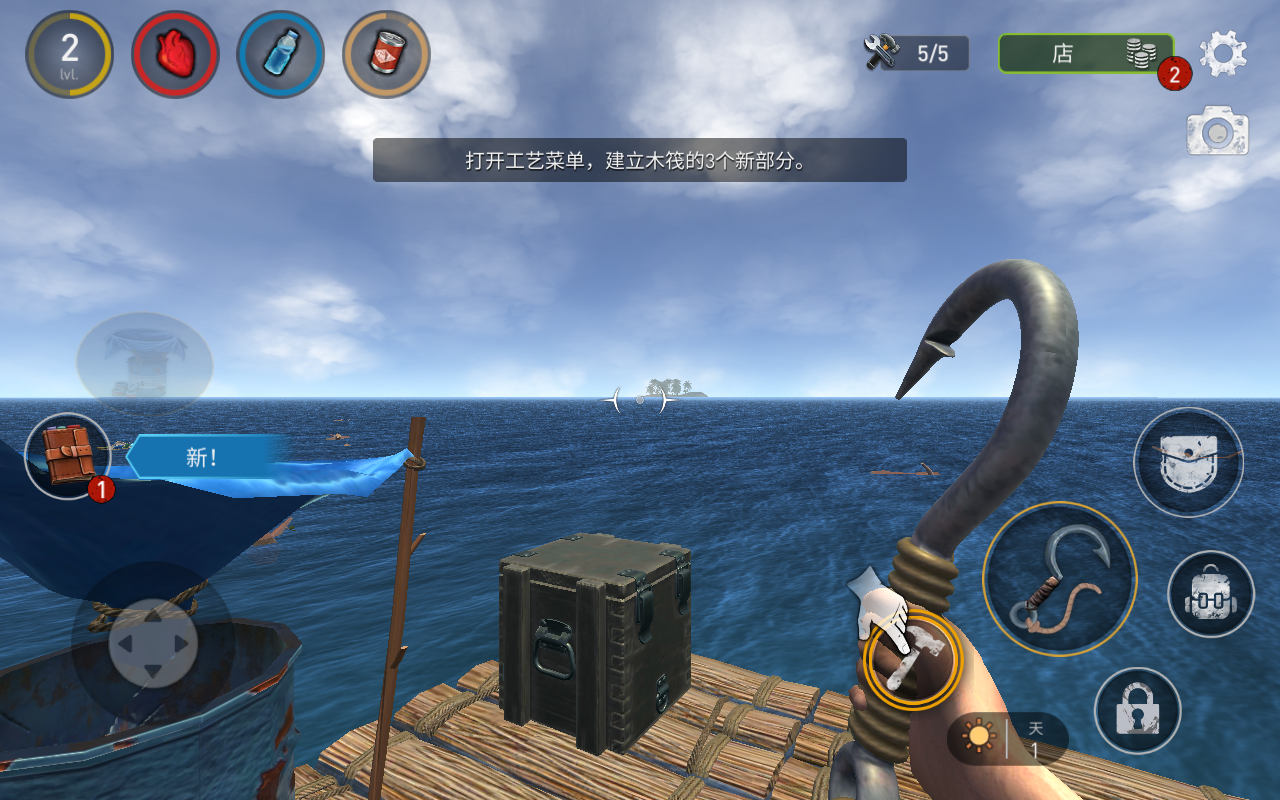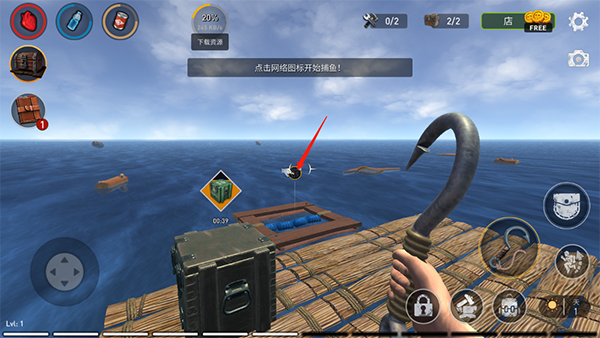 4、在海上遇到物资,使用钩子将其从水中拉出来;