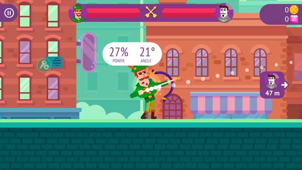3、右边会有距离提示给你,你可以根据射击的弧度和力度来将另一边的人射中。