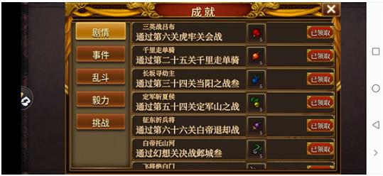 剧情通关成就,刷万人斩成就,挑战关成就等奖励在这里领。