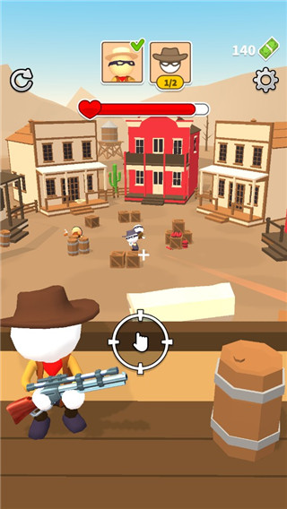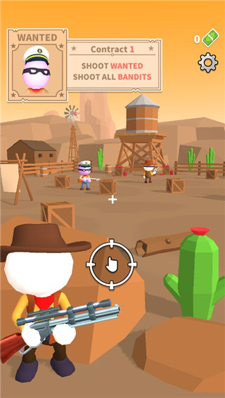 1、下载进入西部狙击手狂野西部,滑动屏幕来寻找敌人;
