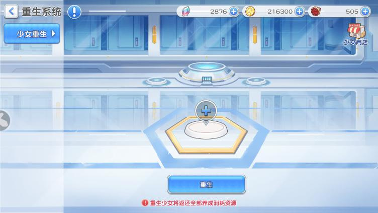1.养成少女等级和潜能的材料将全部返还,重生少女将返还全部养成消耗资源