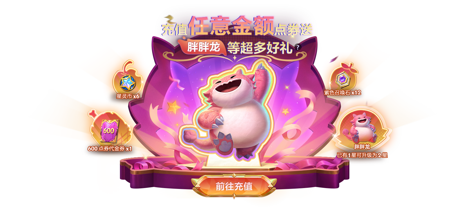 2月5日更新后,“充值任意金额点券送胖胖龙等超多好礼”将重置活动参与,充值任意金额点券可领取奖励,累计值仅限“充值-点券”,月卡等其他直购内容不计入累计充值金额。
