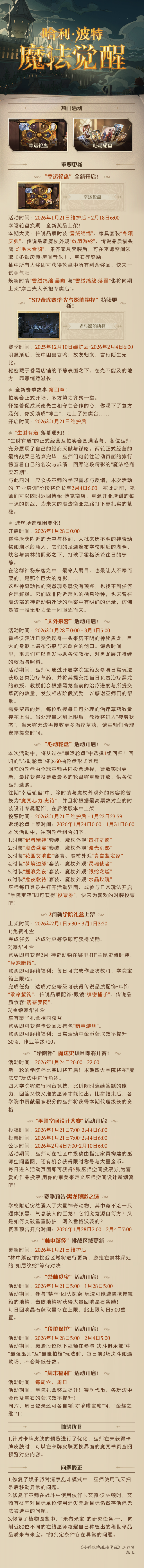 《哈利波特:魔法觉醒》1月21日维护公告