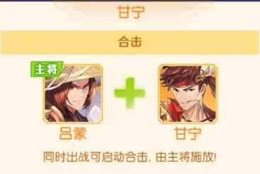 缺点:吕蒙的攻击力有限,造成合击技能的输出也非常低,主要是晕眩控制,所以不适合前期上阵培养,甘宁的配合也与小乔达成默契,即使没有周瑜,甘宁搭配小乔也可以实现完美输出。