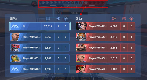 4、玩家点击上方状态栏即可查看己方和敌人玩家的战绩信息。