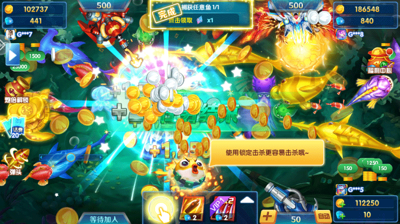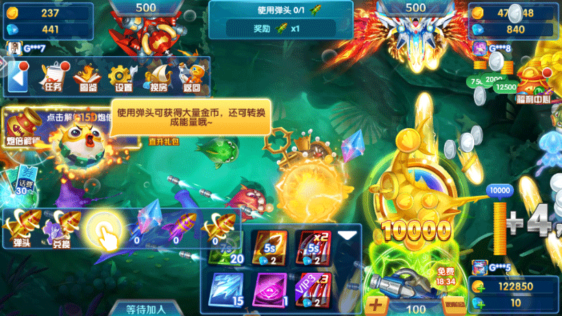 2、开始你的捕鱼之路吧,还可以长按自动释放技能;