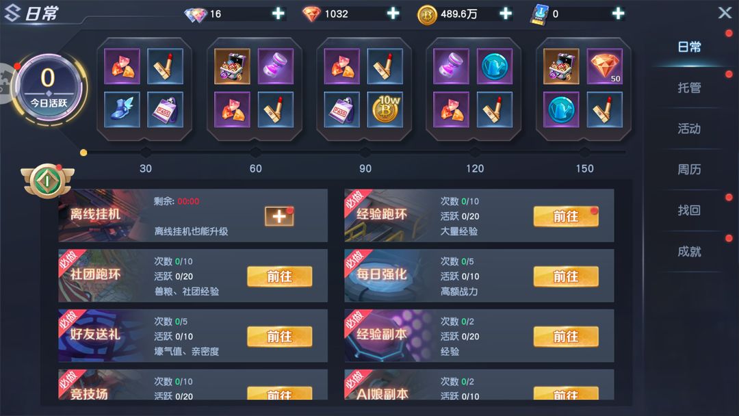 2)人性化的收益找回玩家登录后可在日常界面内,免费或消耗少量星币找回未及时参与的玩法相关收益,不必担心错过日常副本及限时玩法奖励,离线收益统统一键找回。