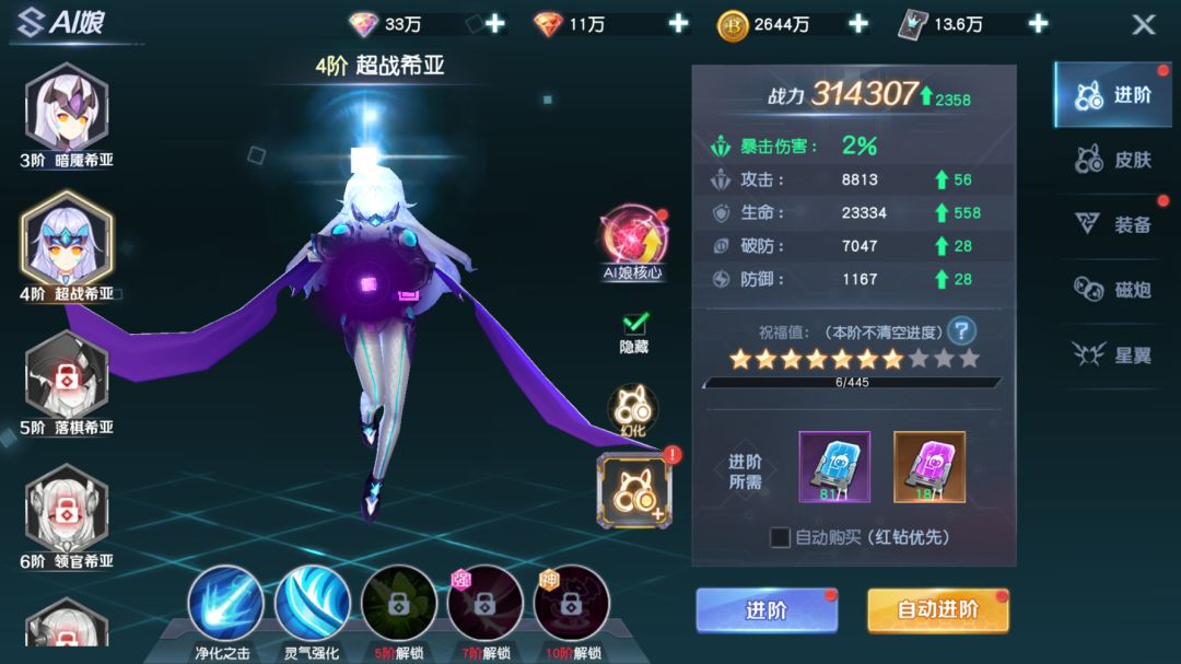 2、AI娘系统进阶并解锁对应装备及皮肤,可获得大量战力。