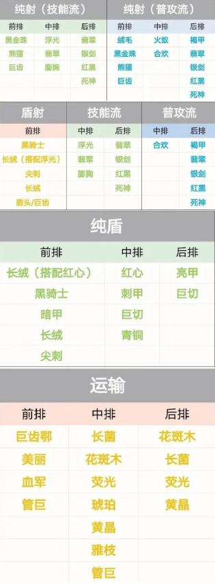 亮纹蚁:携带兵种运输,建议位置中后,蚂蚁品种重蚁;细致介绍为 “闪避是初运核心,爆发是首要,带林蚁减伤、长歌置换”。