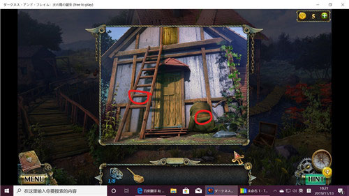 1、仓库,放木桶,把梯子放在木桶上,上阁楼。用钥匙开门。进去。