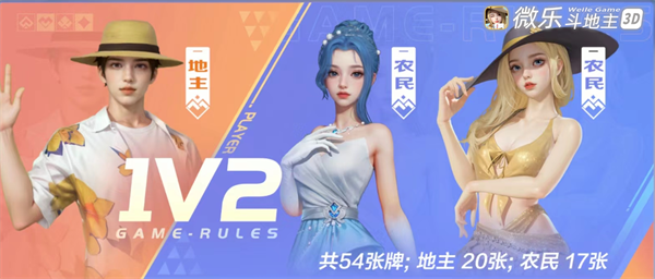 2.斗地主由1副牌,54张组成,是一个1v2,地主对战两个农民的游戏