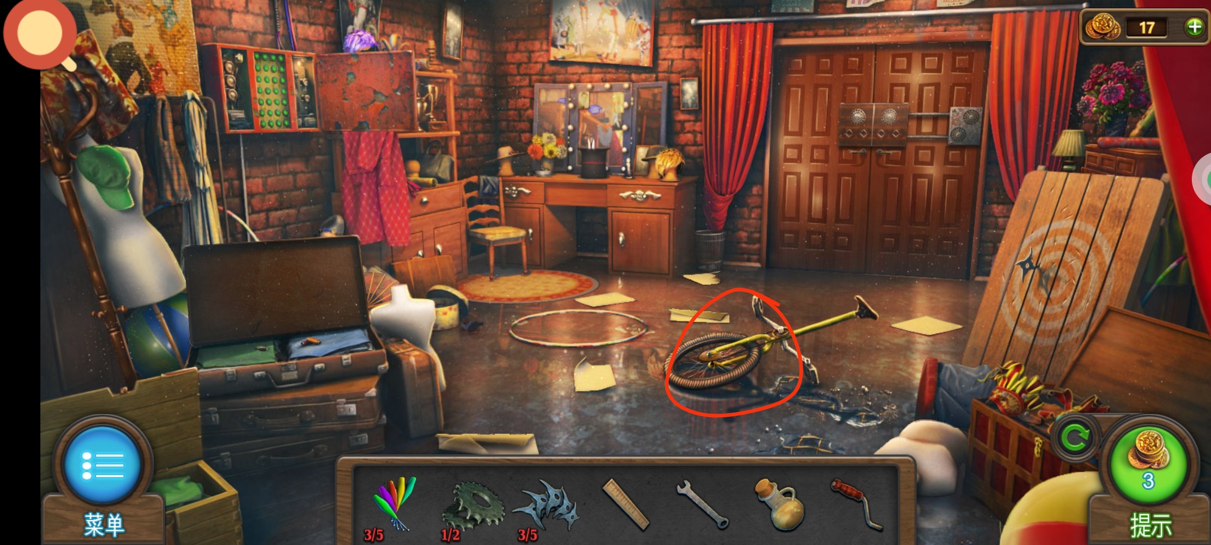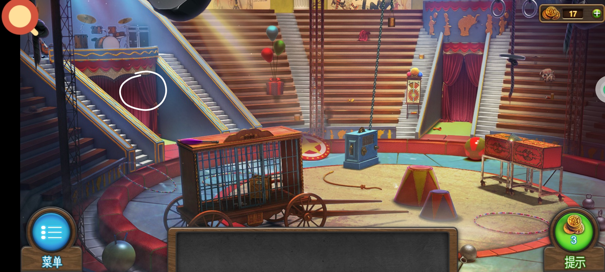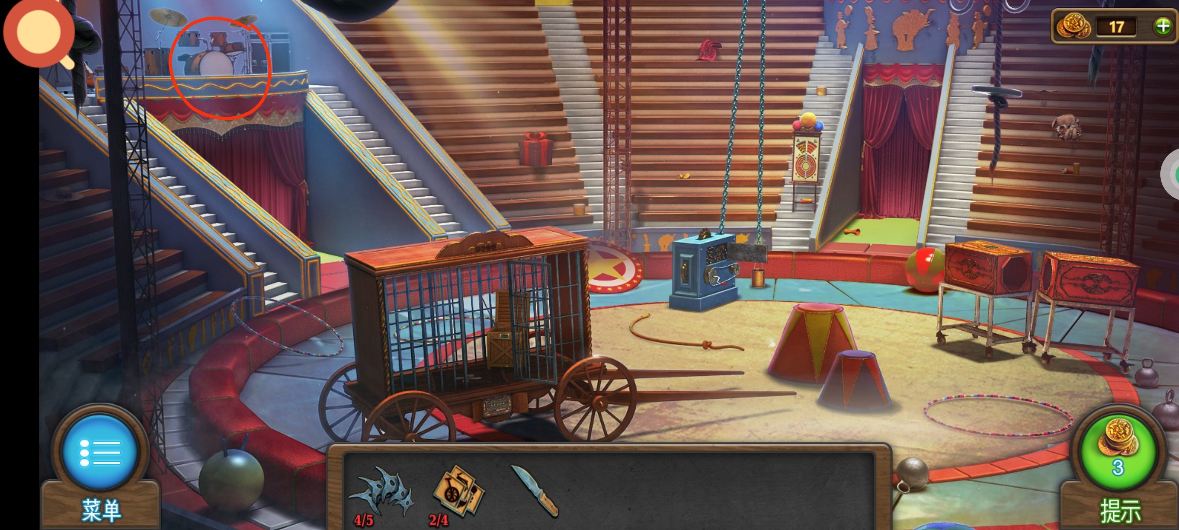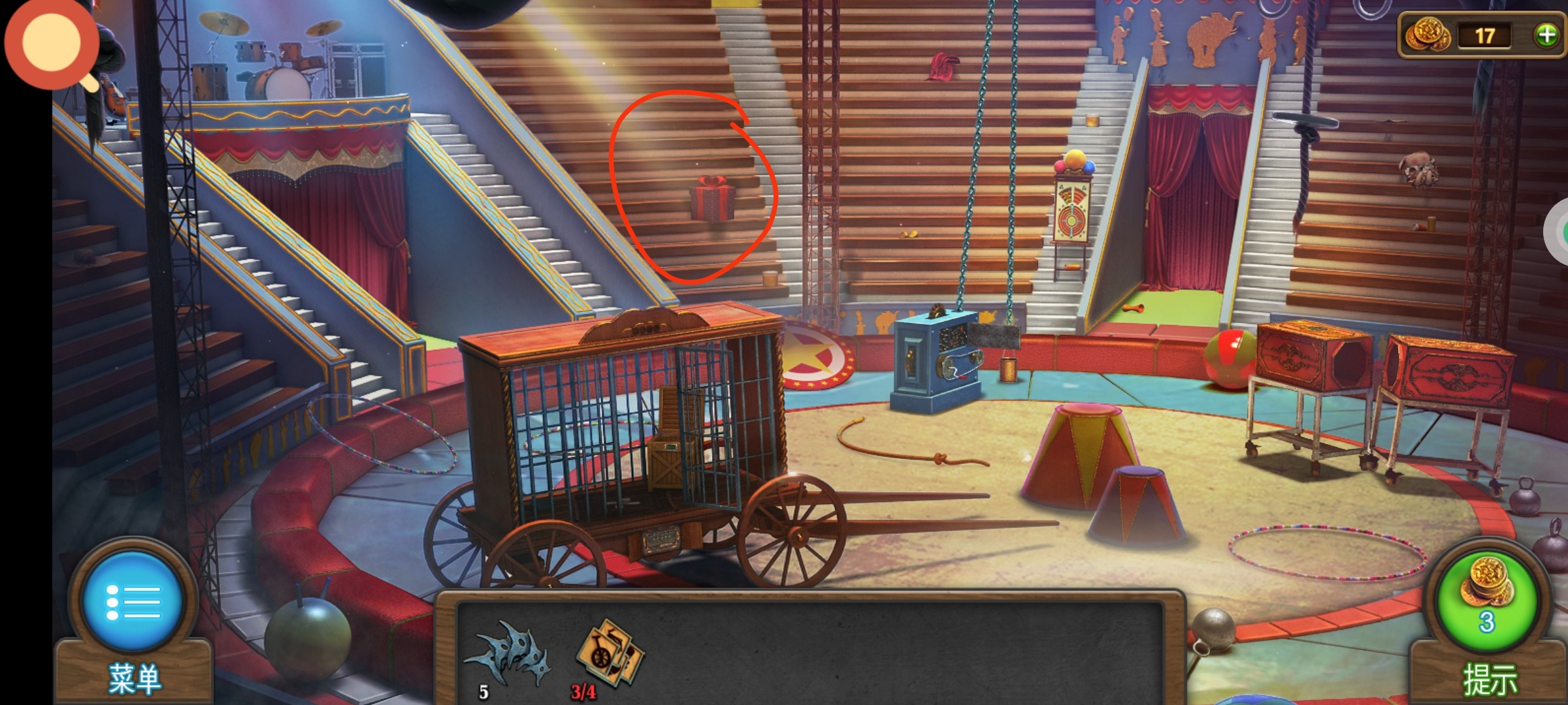 进入主场景,红圈处使用小刀,获得道具:①老虎钳,②筹码3。