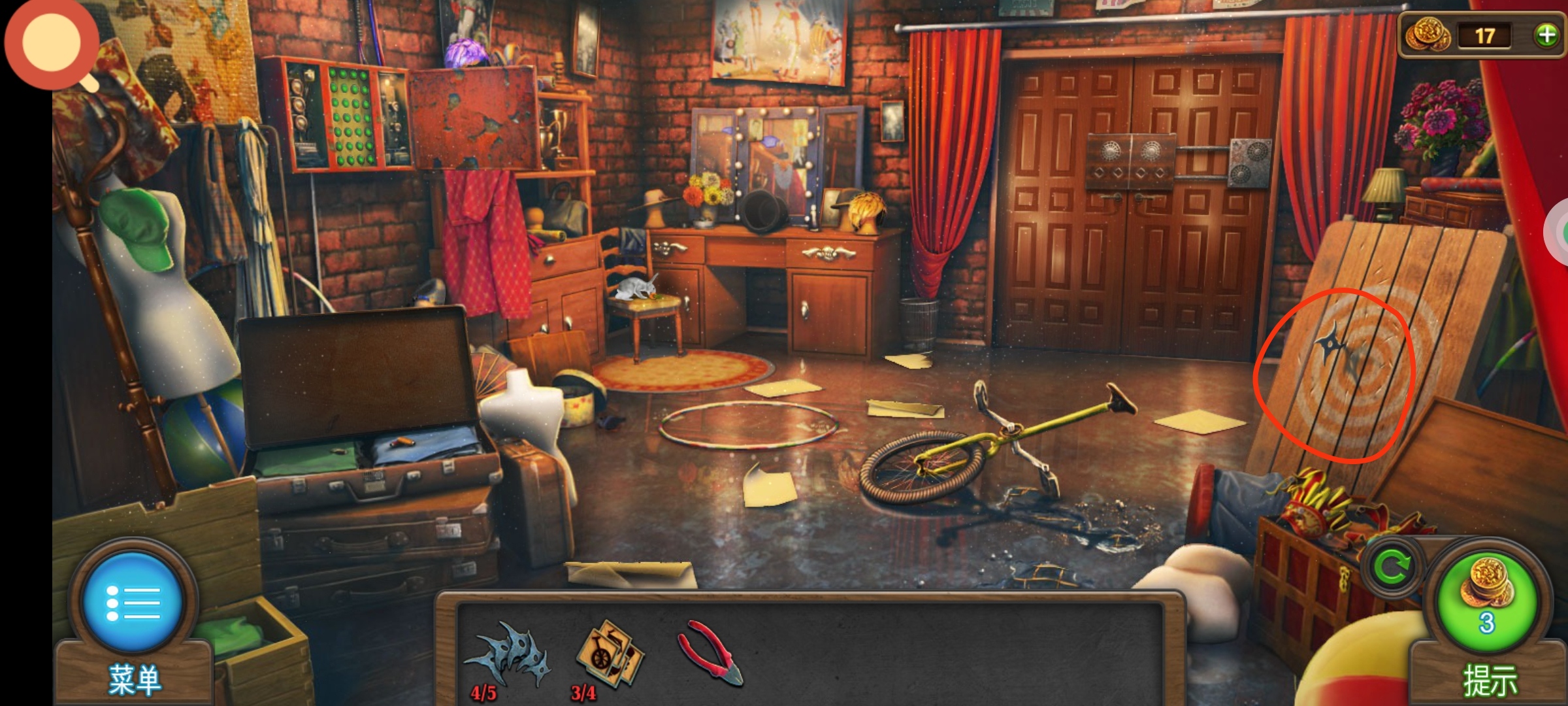 进入道具库,红圈处使用老虎钳,获得道具:飞镖5。