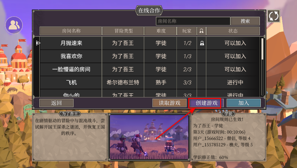 4.这样可以让朋友们看到房间名称,告诉他们密码就可以进入房间了