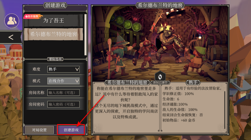 为了吾王是一款融合了桌游、Roguelike和RPG元素的策略冒险手游。你将进入一个随机生成、充满危险与机遇的幻想世界。游戏强调团队合作,你需要与其他玩家组建三人小队,探索地牢、完成任务,并在回合制战斗中对抗各种怪物。每次冒险的地图、事件和战利品都独一无二,你需要运用智慧和策略,为王国而战。