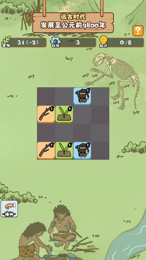 2、进入游戏如图,玩家需通过移动来消除相同的三个方块,以此来模拟文明发展;