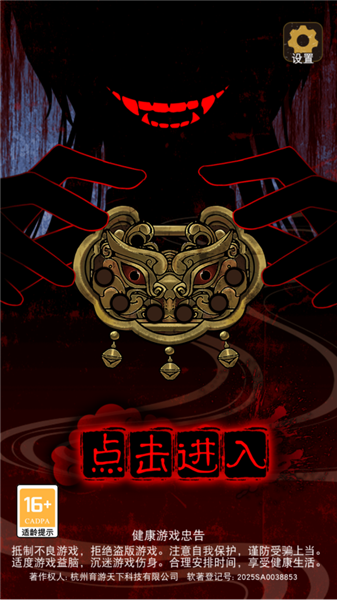 偿命锁是一款极度惊悚、充满悬疑的解谜恐怖手游。故事围绕着一把诡异的古老铜锁展开,传说它锁住了无数冤魂的怨气。玩家将在阴森压抑的场景中探索,透过收集线索、解开复杂的机关谜题,逐步揭开这把锁背後的血腥历史和骇人听闻的真相。游戏以其深入人心的恐怖氛围、烧脑的逻辑推理和环环相扣的剧情为特色,旨在为你带来一场挑战心智极限的沉浸式中式恐怖体验。
