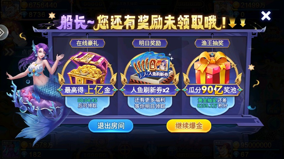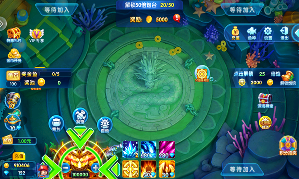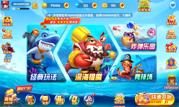 捕鱼竞技场游戏福利丰厚,每日登录、新手盛典、定点奖励持续发放海量金币和道具,确保玩家能轻松上手、畅快游玩。玩家可以随心所欲地解锁超炫酷炮台皮肤和翅膀,享受火力全开、秒杀鱼群的快感,在真人互动中尽情探索海底世界,成为独一无二的渔场明星。