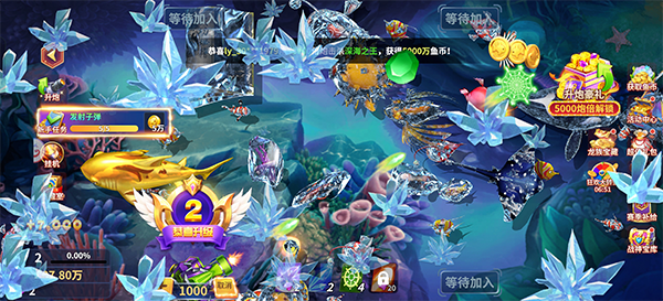 高爆捕鱼以超高的爆率而闻名。玩家将扮演捕鱼高手,使用各种强力炮台和武器,发射子弹以捕捉各种珍贵的海洋生物。游戏中提供了多种不同类型的鱼类和海底宝藏,每个都有不同的价值和难度。玩家需要利用技巧和策略,选
