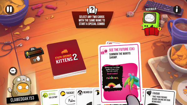 7.你就直接的打出来,不浪费你的回合,直接可以抽一张牌到手里,只要不是炸弹猫就好。
